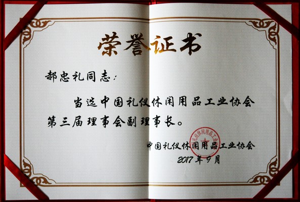 中国礼仪休闲用品工业协会第三届理事会副理事长