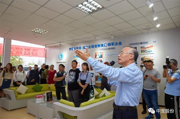 中宠股份董事长郝忠礼先生亲自进行现场讲解,带领观摩团参观了中宠股份顽皮工厂店、宠物湿粮工厂、宠物干粮工厂、宠物零食工厂、宠物洁齿骨工厂、宠物饼干工厂,详细介绍了企业和品牌发展历史,宠物食品从原材料到加工工艺到包装再到仓储的整个流程。让每一位参观者近距离了解高品质产品是如何通过选料、加工、生产、检验和贮存等各个环节完成的。