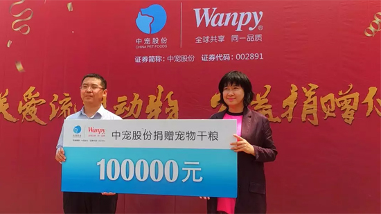 继2018年中宠股份与天使动保(成立于2010年2月,是一个民间动物保护志愿者团队,活动包括动保宣传、立法推进、动物医疗资助、现场救助等)携手成为公益合作伙伴后,2019年5月11日双方再携手,中宠股份向天使动保公益组织现场捐赠价值10万元宠物食品,为流浪动物创造更好的生存环境。