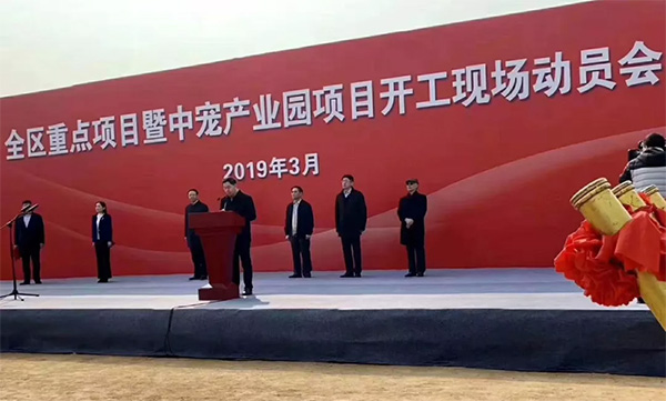 2019年3月1日,烟台市莱山区区委、区政府领导,齐聚中宠产业园,共同见证莱山区重点项目开工月活动启动仪式。