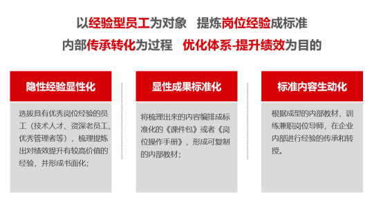 本次培训项目共分四个阶段:第一阶段(隐性经验显性化),第二阶段(显性成果标准化),第三阶段(标准内容生动化),以及最后的(成果评审)阶段。本次参训的49名学员,个个都是岗位经验丰富的骨干人才。