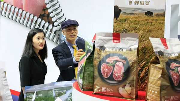 签约结束后,京东一行来到了中宠股份自主品牌Wanpy的亚宠展展台,对新亮相的Wanpy新品主粮产品进行了深入地了解。
