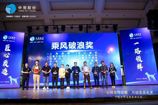 大会最后,特别设置了颁奖环节,郝董及相关领导对中宠股份的优秀合作伙伴进行表彰。“战略同盟奖”“二十载风雨同舟奖”“突出贡献奖”“乘风破浪奖”“新锐突破奖”“合作共赢奖”……奖项是肯定,也是对和中宠股份一起前行的伙伴们的感恩。