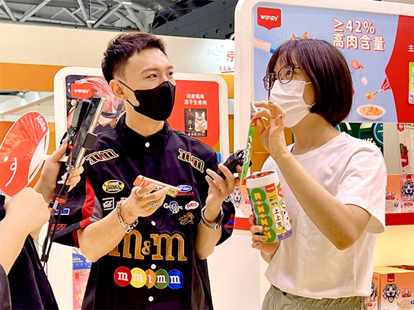 展台的产品陈列、现场活动以及颜值超高的品牌好物周边,都吸引了合作伙伴和消费者的热情互动。同时,现场不少达人及行业媒体也现身展台,以线上直播的形式带领粉丝们云逛亚宠展。