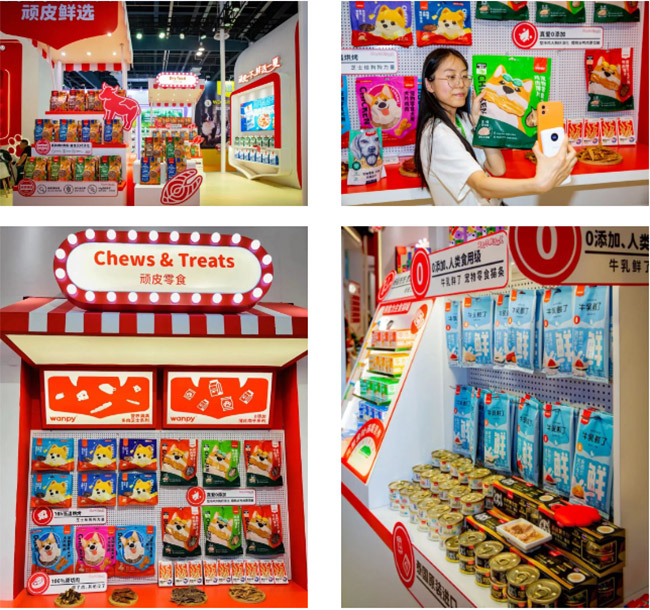 不仅安排有多场精彩直播,展台现场更有不少达人和参展观众携宠亮相,展架上多款零食好物吸引一批批萌宠驻足停留。