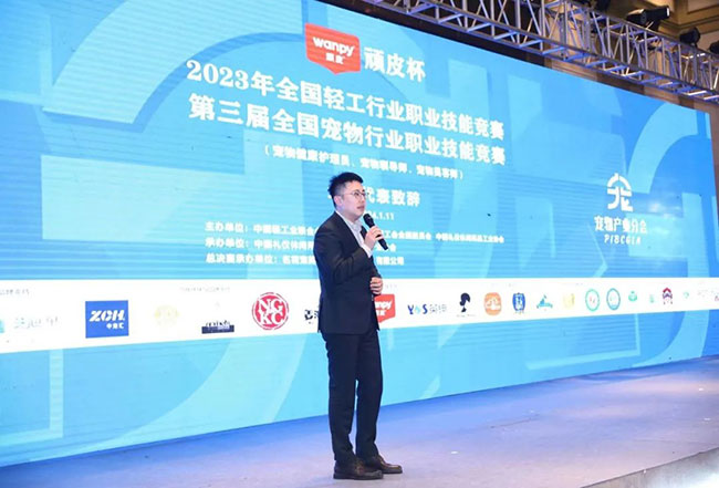 1月11日,由中国轻工业联合会、中国财贸轻纺烟草工会全国委员会、中国礼仪休闲用品工业协会主办,中国礼仪休闲用品工业协会宠物产业分会承办的“顽皮杯”2023年全国轻工行业职业技能竞赛——第三届全国宠物行业职业技能竞赛闭幕式在武汉圆满落幕。中宠股份市场管理中心副总经理陈坤论先生出席闭幕式并致辞。作为中国礼仪休闲用品工业协会宠物产业分会的会长单位,中宠股份已连续三届总冠名赞助该项赛事。