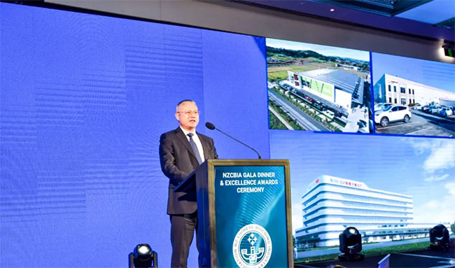 8月9日,由新西兰华人建筑业协会主办的NZCBIA卓越奖在新西兰奥克兰正式揭晓,中宠股份NPTC智能湿粮生产基地成功荣获NZCBIA EXCELLENCE AWARDS——2024 SPECIAL CONTRIBUTION AWARD(特别贡献奖),新西兰国家总理克里斯托弗·拉克森为中宠股份现场颁发奖项,中宠股份董事、常务副总裁江移山先生上台领奖并致辞。中国驻奥克兰总领事陈世杰、新西兰建设建筑部部长Hon.Chris Penk、国会议员陆楠以及近千名商协会代表及建筑行业翘楚共同出席本次颁奖典礼。