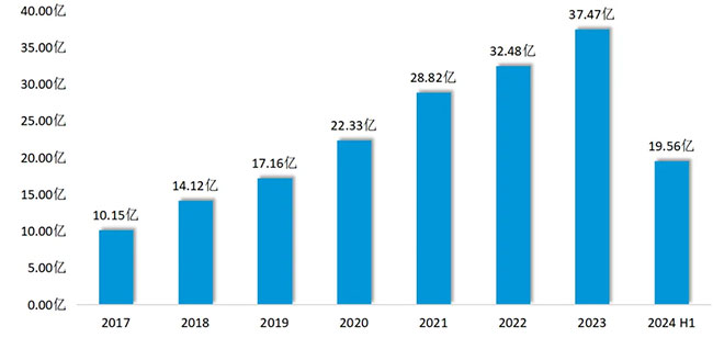 2017年,中宠股份总营收为10.15亿元,7年风雨兼程,中宠股份营收数据连年增长,2022年已成功突破30亿关口,2023年更是攀升到37.47亿元,相比上市之初,已实现超三倍增长。8月19日,中宠股份2024年半年报发布,半年营收近20亿,创历史新高!