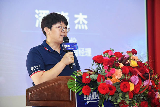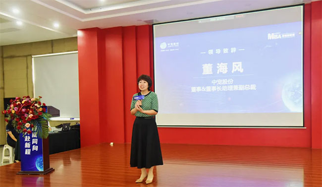 仪式过后,本届MBA高级研修班班主任、中宠股份董事、董事长助理、副总裁董海风女士代表公司领导现场致辞。董总首先向本届MBA高级研修班的结业学员们表示热烈的祝贺,并对公司给予的平台机会、高管们百忙之中抽调的时间精力、组织团队的辛勤付出、教学老师的谆谆教诲以及学员家属们的默默支持表示衷心的感谢。典礼现场,董总分享了一系列切身的业务体会,从学员们的成长变化中感受到了本届MBA课程带来的点滴渗透。站在新的起点,董总向各位学员提出希望和祝福,希望大家在未来的成长发展中迎接挑战,把握机遇,与中宠股份的长期发展并步齐趋,奋楫同向,共赴新程!
