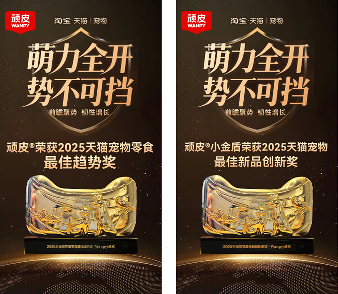 WANPY顽皮®荣获2025天猫宠物猫零食最佳趋势奖